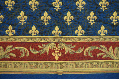 Gobelin Fleur de Lys – Wandbehang / Tischdecke 215×135 cm in Blau & Rot